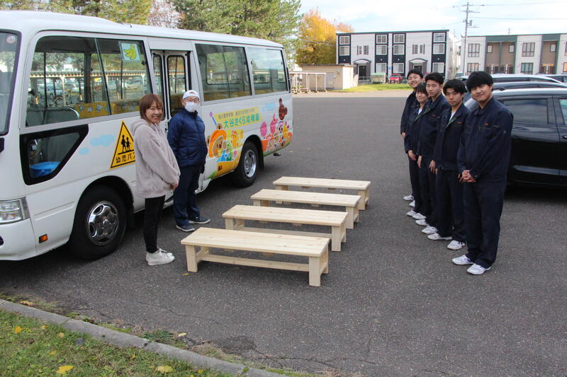 大谷さくら幼稚園からの依頼を受けて製作した「園児用ベンチ」が完成し、