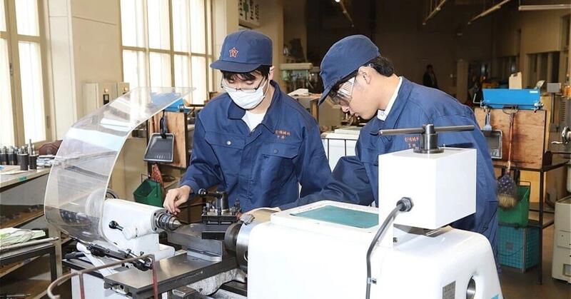 「電子機械科」では、鋼材旋盤や金属加工などの機械技術と自動化された機械装置の制御などのメカトロニクスの基礎知識を学び、技術者を育成しています。また、2年生の時に選択科目で自動車工学を学べたり、コース制にて空気調和設備、衛生防災設備と学びたい分野へ移行できます。最近ではダイキン工業様より、実習用エアコンの寄贈を受け、人材育成に役立てています。またものづくりコンテスト「溶接部門」に出場して、全国大会出場権を獲得しています。