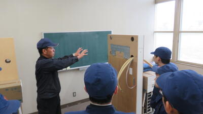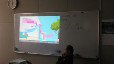 旭川市科学館サイパルでは施設内の空調シスステムの一部である駐車場の排雪を利用した雪冷房システムの見学をしました。大変貴重な見学となり生徒達は熱心にメモをとっていました。
